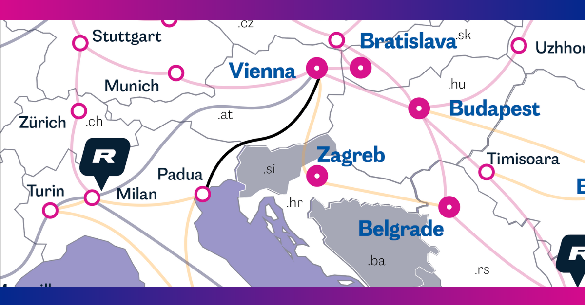 Die Strecke Padua-Wien ist bereits die fünfte Expansion von RETN in Italien und bietet eine alternative Verbindung zur herkömmlichen Strecke über Rom und eine belastbare Alternative für Mailand.