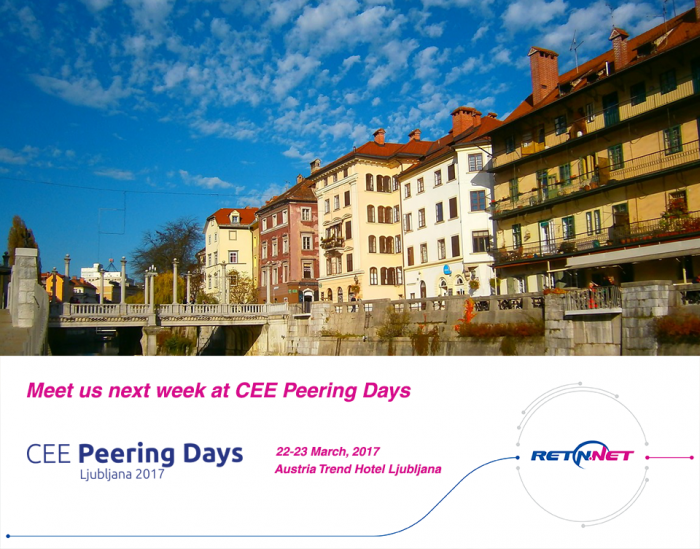 Next week RETN is travelling to Slovenia for CEE Peering Days 2017. With approximately 200 attendees expected, this international conference gathers experts from different telecom sectors: network engineers, peering coordinators, internet providers, cloud administrators and data centre operators in the Central and Eastern European Region.
